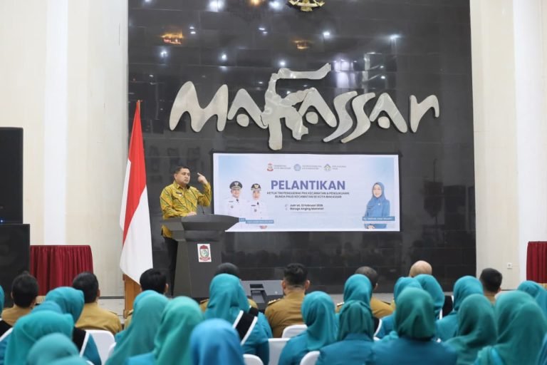 Pembina Tim Penggerak Pemberdayaan dan Kesejahteraan Keluarga (TP PKK) Kota Makassar, Munafri Arifuddin, menyampaikan sejumlah pesan kepada para camat dan Ketua TP PKK kecamatan saat pelantikan pengurus TP PKK se-Kota Makassar di Baruga Anging Mamiri, Rumah Jabatan Wali Kota Makassar, Jumat (13/2/2026).